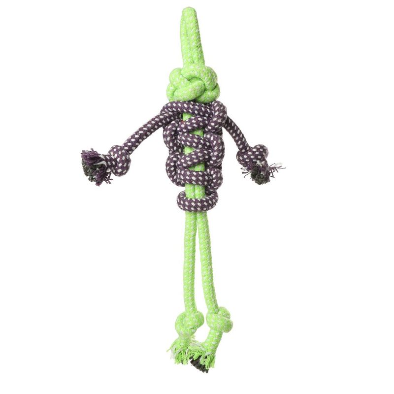Веревочная игрушка в виде человечка предназначена для тяговых игр с собаками. Такие игрушки хорошо развивают челюсть, массируют десны и способствуют очищению зубного налета. Веревка сплетена из нитей натурального хлопка, поэтому безопасна для здоровья Вашего питомца.