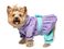 Яркий демисезонный комбинезон с капюшоном и юбочкой изготовлен из курточной ткани Дюспо, которая эффективно отталкивает влагу, не пропускает ветер, не боится сильных морозов и ярких солнечных лучей. Подкладка выполнена из подкладочной ткани, что позволяет препятствовать образованию колтунов. Комбинезон выполнен с учетом анатомических особенностей тела собаки, имеет специальные вставки из резинок, что позволяет изделию плотно сидеть на собаке.