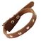 Кожаный ошейник - незаменимый аксессуар для владельцев собак всех пород и возрастов. Одинарное изделие выполнено из мягкой, но прочной кожи высокого качества с использованием оригинальной металлической фурнитуры в качестве декора. Предусмотренные отверстия позволяют удобно подгонять длину под индивидуальные параметры животного, а функциональное металлическое кольцо отлично подойдет для крепления карабина поводка, адресника или других аксессуаров.