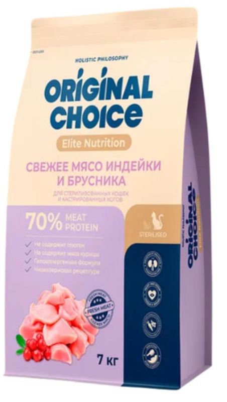 ГлавнаяКаталогКорм для кошек → Original Choice, Полнорационный сухой корм для взрослых стерилизованных кошек и кастрированных котов со свежим мясом индейки и брусникой