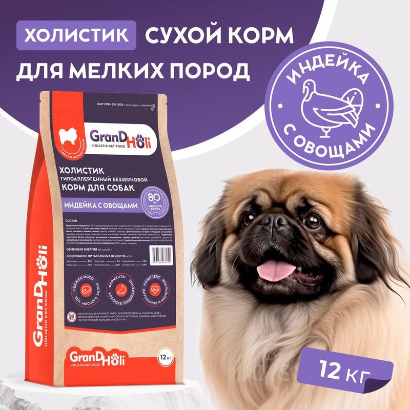 ГлавнаяКаталогКорм для собак → GRANDHOLI, Сухой корм холистик для собак мелких пород "Индейка с овощами"