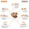 Дегидрированное мясо (курица 12%, индейка 10%), мясо утки 8%, кукуруза, пшеница, жир куриный, растительные волокна (источник клетчатки), гидролизованные мясные белки, кукурузный глютен, дрожжи пивные, жир лососевый 1%, пробиотический комплекс ProStor (Bacillus subtillis, Bacillus licheniformis, автолизат пивных дрожжей, пектиновый комплекс, эхинацея, ромашка), клюква сушеная, сельдерей сушенный, Юкка Шидигера, метионин, таурин.